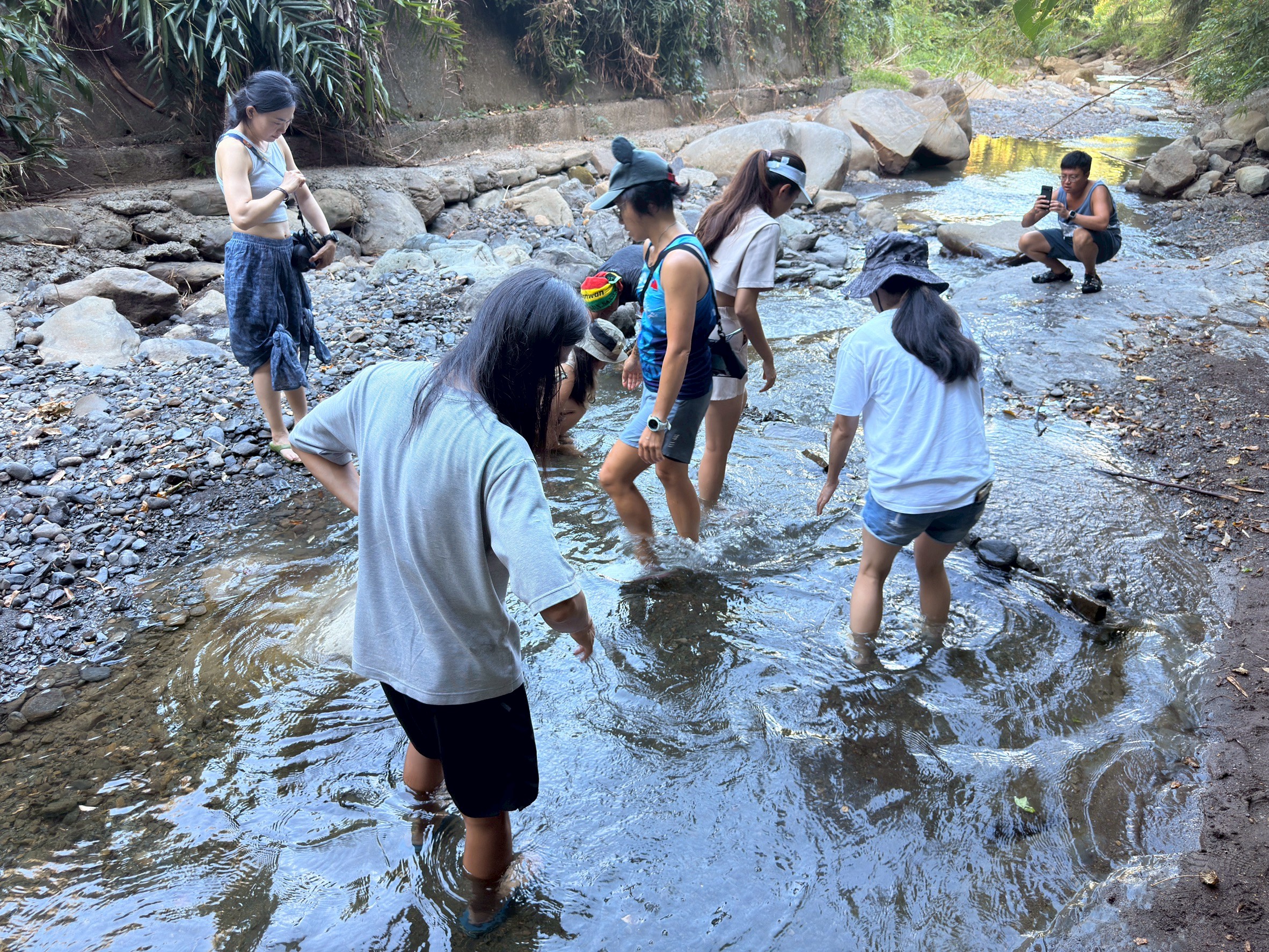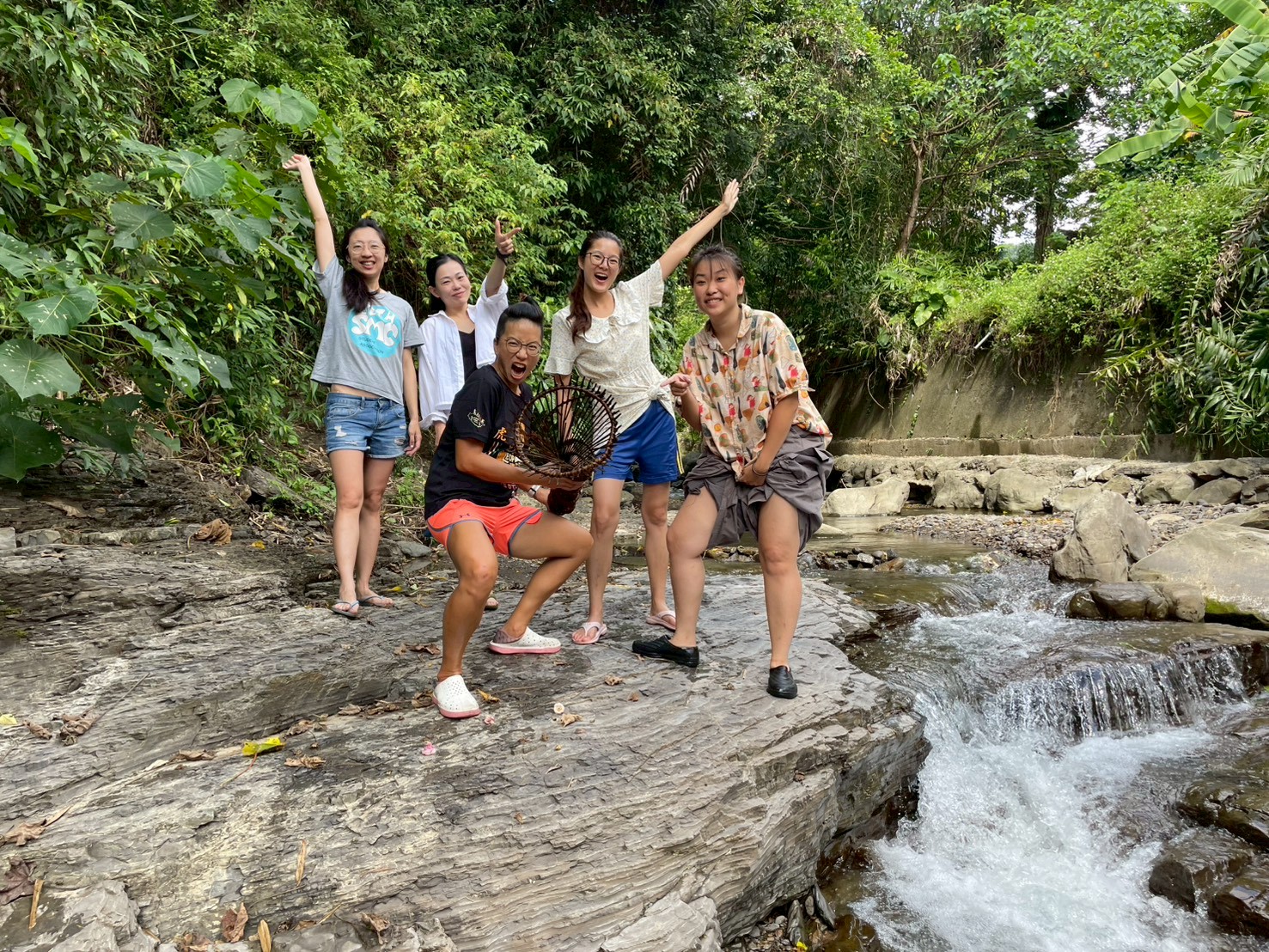 一起在溪流堆疊石頭,設置傳統漁獵的蝦籠渠道,等待一夜經過,隔天再來看是否有抓到溪蝦或是螃蟹